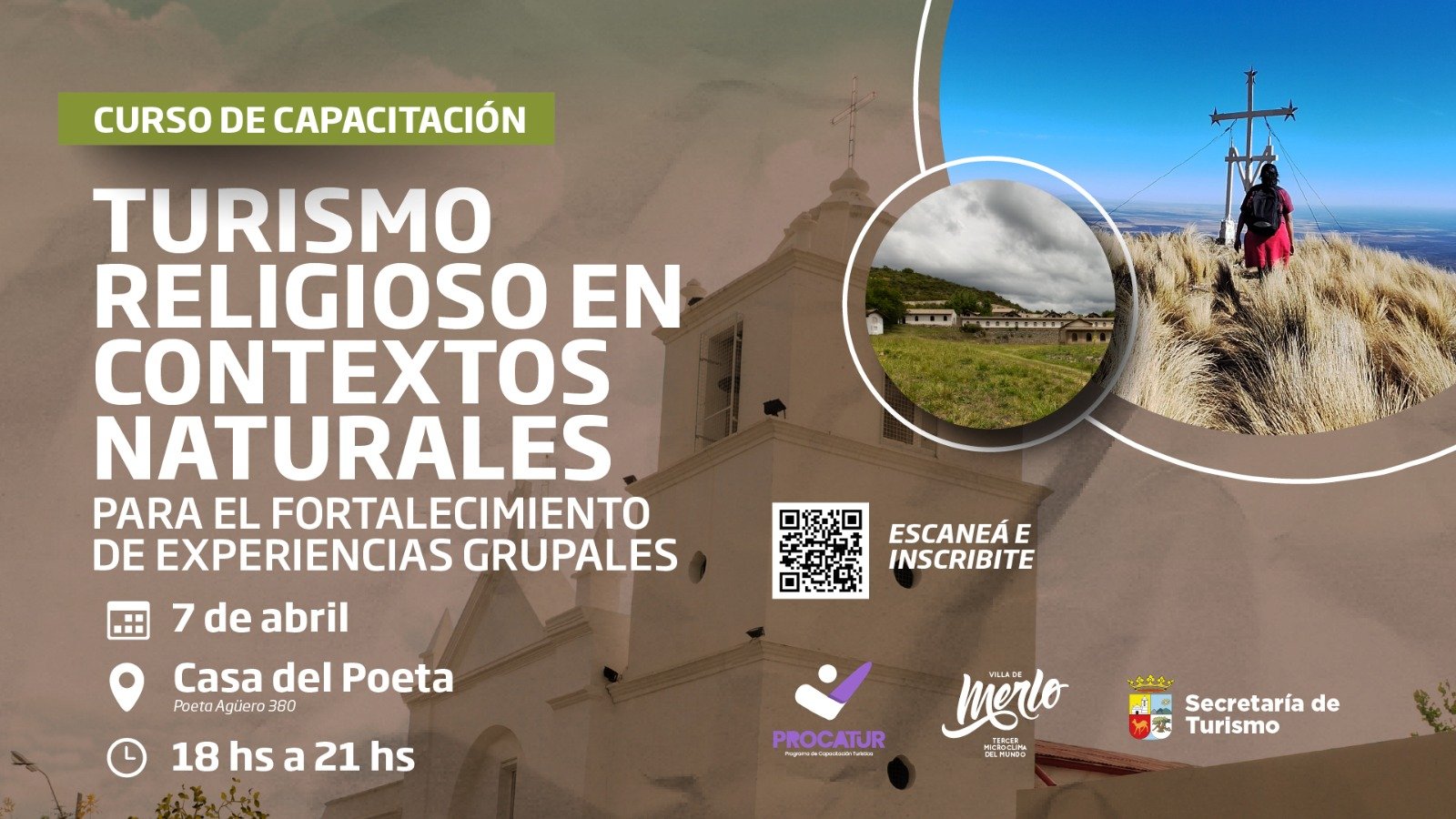 Este 7 de Abril el PROCATUR dictara la primera capacitación del año 2025 especialmente diseñada para abordar la relación entre los aspectos religiosos y naturales en Villa de Merlo. Esta actividad formativa tiene como objetivo ofrecer a los participantes un entendimiento integral de cómo la fe y la naturaleza se entrelazan, destacando la relevancia histórica, cultural y espiritual de los espacios sagrados que se encuentran dispersos en el paisaje de Villa de Merlo.