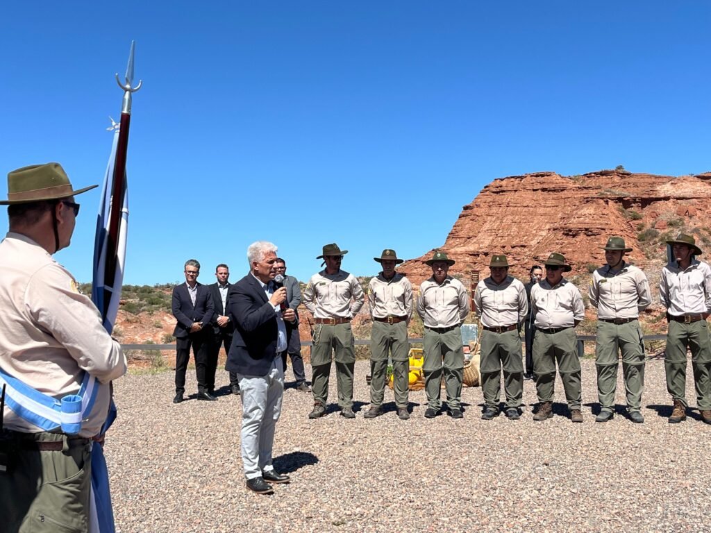 El evento contó con la presencia del presidente de la Administración de Parques Nacionales, del gobernador de la provincia, Claudio Poggi, y del ministro de Turismo y Cultura, Juan Álvarez Pinto, entre otros. La ceremonia incluyó el izamiento de la bandera nacional y la entonación del Himno Nacional Argentino, para luego dar paso a las palabras de las autoridades.