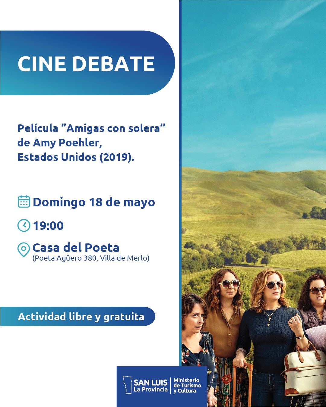 Casa del Poeta Agüero Poeta Agüero 380El domingo 18 de mayo a las 19:00 hs en el ciclo de cine debate proyectaremos “Amigas con solera” de Amy Poehler, Estados Unidos 2019. APM13. Sinopsis: Con la dirección de Amy Poehler, vamos a ver una muy divertida comedia con un reparto de mujeres cuyo encanto colectivo se hace notar. El film nos ofrece […]