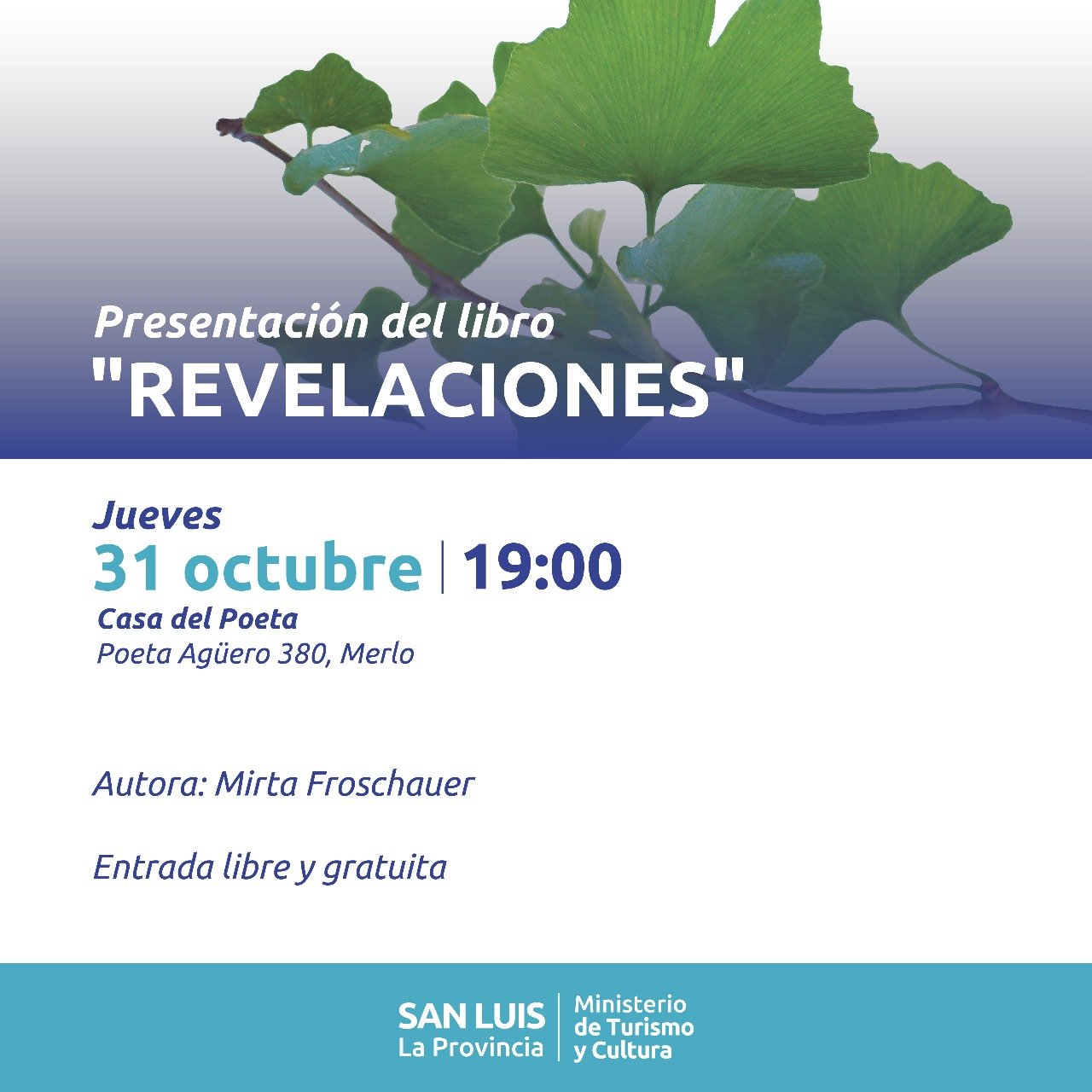 El jueves 31 de octubre a las 19:00 hs se presenta el libro “Revelaciones” de Mirta Froschauer.La autora presentará su primer libro, de autoayuda, meditación y desarrollo personal.Habrá también una ejercitación de meditación, con las distintas técnicas que hoy nos brinda la ciencia para el equilibrio cuerpo-mente y distintas herramientas que nos llevan a un […]