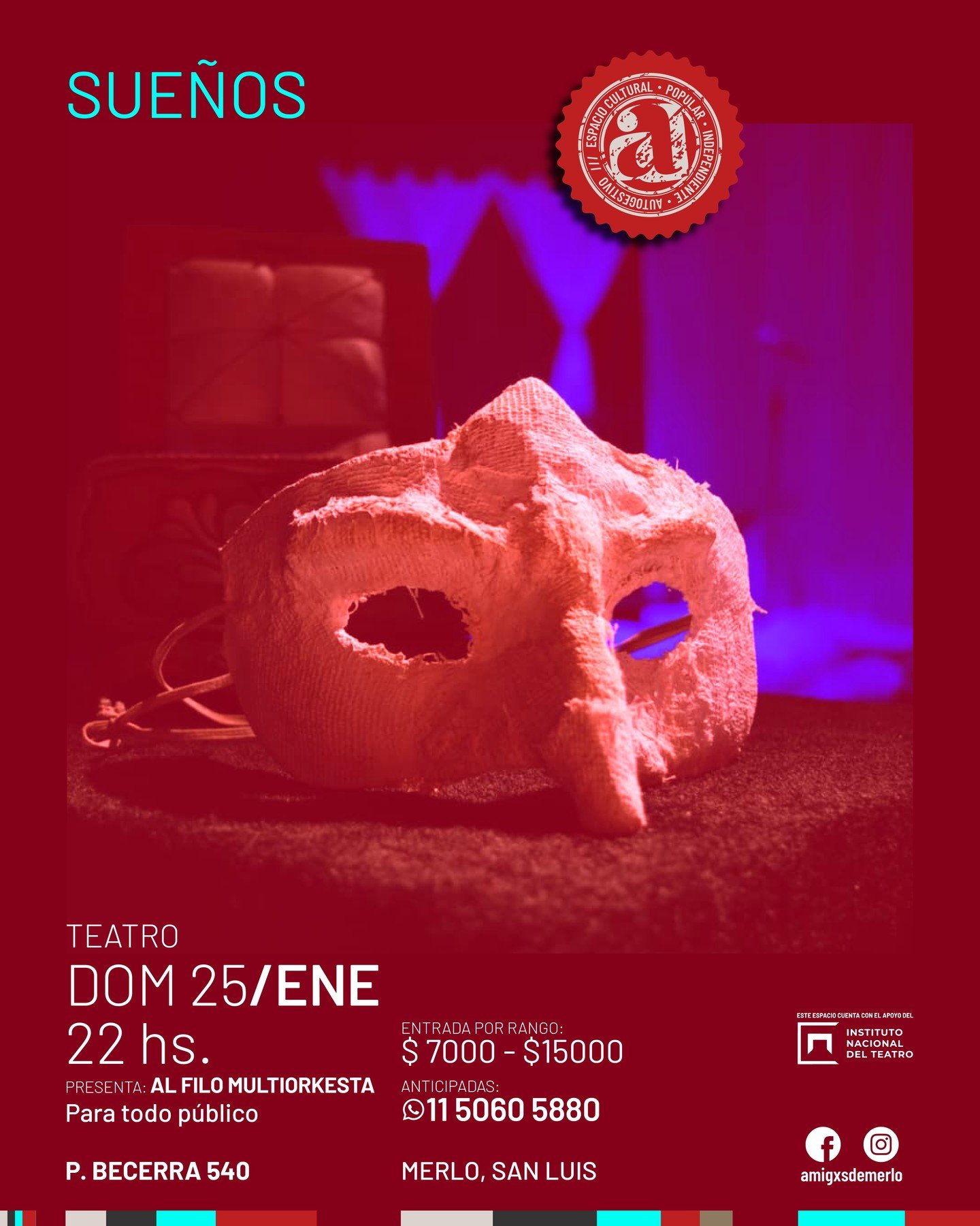 Una obra onírica, poética y cómica, una composición espontánea donde se representan los sueños que el público escribe... ¿De qué están hechos los sueños? El espectador propone, el director compone y el elenco dispone. Domingo 25/01/2026 22hs. Espacio Cultural Amigxs de Merlo Entradas por rango entre $7000 y $15000, (vos decidís el precio). Entradas anticipadas […]