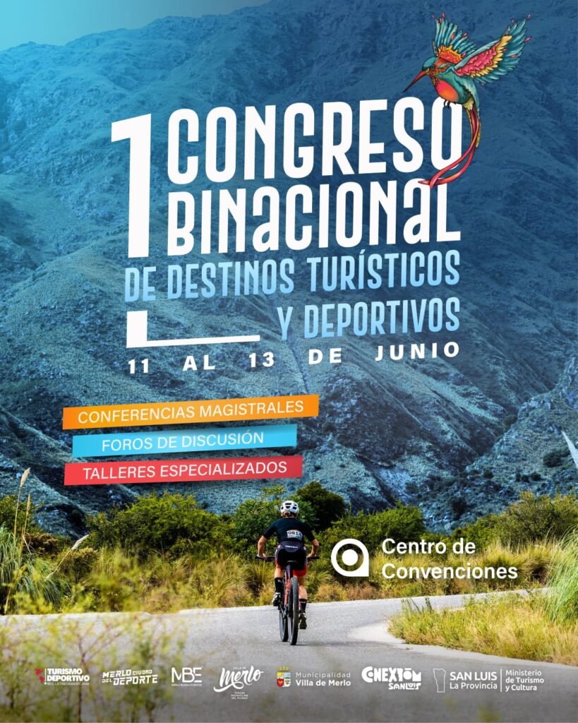 Del 11 al 13 de junio, Villa de Merlo será sede del 1° Congreso Binacional de Destinos Turísticos y Deportivos, organizado por el Municipio de la Villa de Merlo través de la Secretaría de Gobierno y Deportes, Merlo Bureau de Eventos y la Red Latinoamericana de Destinos Turísticos. El evento reunirá a profesionales, autoridades, instituciones y apasionados del turismo y el deporte provenientes de Argentina y Chile.