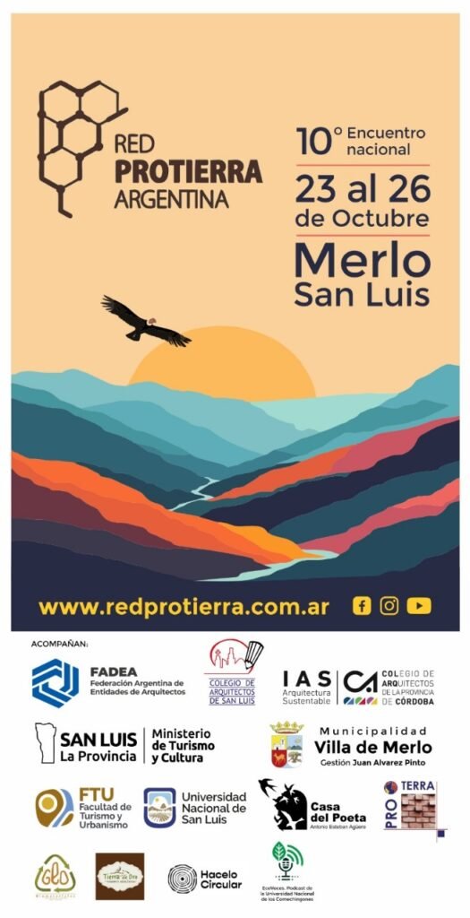 El 10° Encuentro en la Villa de Merlo, que cuenta con el aval de la Facultad de Turismo y Urbanismo de la Universidad Nacional de San Luis FTU-UNSL, busca fortalecer la región de Cuyo en la temática de construcción con tierra y hábitat sostenible. De igual modo, cuenta con el acompañamiento del Colegio de Arquitectos de la Provincia de San Luis CASL, la Federación Argentina de Entidades de Arquitectos FADEA, la Red Iberoamericana PROTERRA y el Colegio de Arquitectos de la Provincia de Córdoba, con su Instituto de Arquitectura Sustentable.