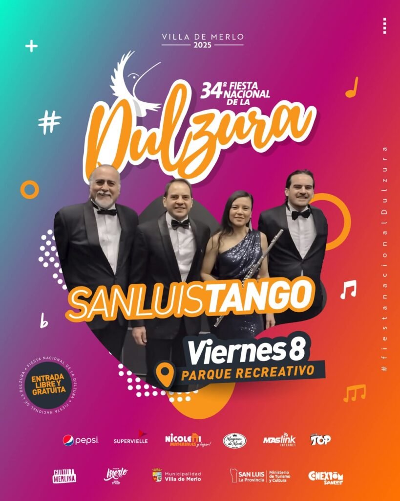 🎉 ¡Se viene la Fiesta Nacional de la Dulzura en Merlo en conjunto con el Kilómetro del Alfajor Argentino, una propuesta que consolida a Merlo como punto oficial en la Ruta del Alfajor ✨! 🍭 Del 8 al 10 de agosto, te esperamos con entrada libre y gratuita para vivir un fin de semana inolvidable en el Parque Recreativo.