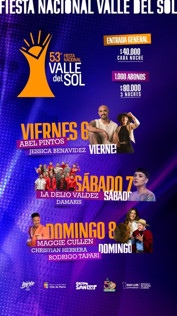 El 6, 7 y 8 de febrero se viene una nueva edición del Festival Valle del sol que hará vibrar a Villa de Merlo durante tres noches de música en vivo ![]()
