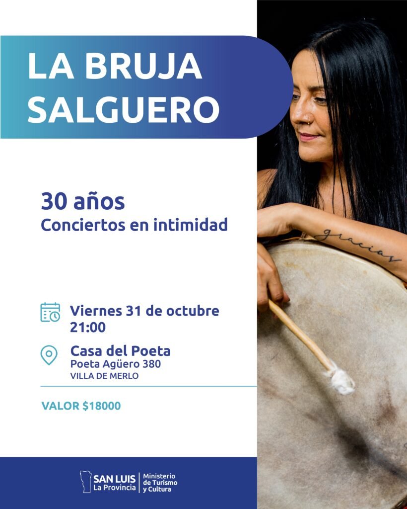 El viernes 31 de octubre a las 21:00 hs La Bruja Salguero se presenta por primera vez en el auditorio de la Casa del Poeta con su espectáculo “30 años, conciertos en intimidad”.