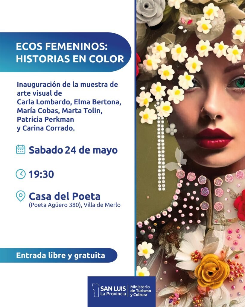 El sábado 24 de mayo a las 19:30 hs se inaugura la muestra de arte visual “Ecos femeninos: historias en color” de Carla Lombardo, Elma Bertona, María Cobas Cagnolati, Marta Tolin, Patricia Perkman y Carina Corrado.