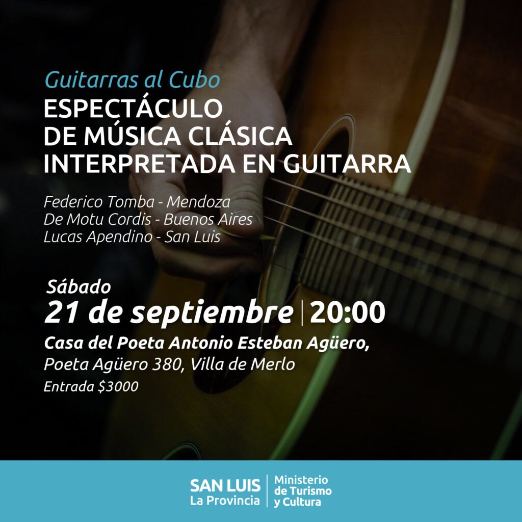El sábado 21 de septiembre a las 20:00 hs se presenta “Guitarras al cubo”, espectáculo de música clásica interpretada en guitarra.