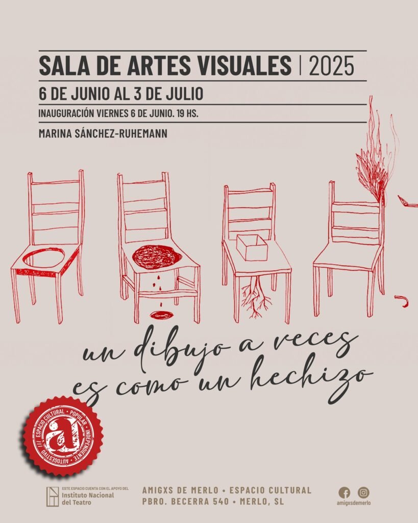 El viernes 6 de junio a las 19:00hs., en la Sala de Artes Visuales del Espacio Cultural @amigxsdemerlo se inaugura la Exposición “UN DIBUJO A VECES ES COMO UN HECHIZO” de la artista visual Marina Sánchez-Ruhemann @marinamarinistica