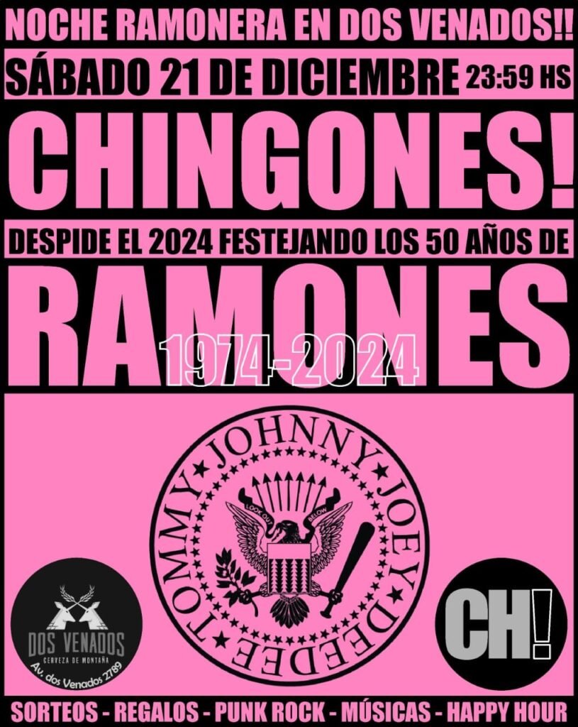 Este sábado 21 de diciembre a las 23:30 hs vení a Dos Venados a festejar como se debe los 50 años de Los Ramones, la banda leyenda del punk rock ![]()