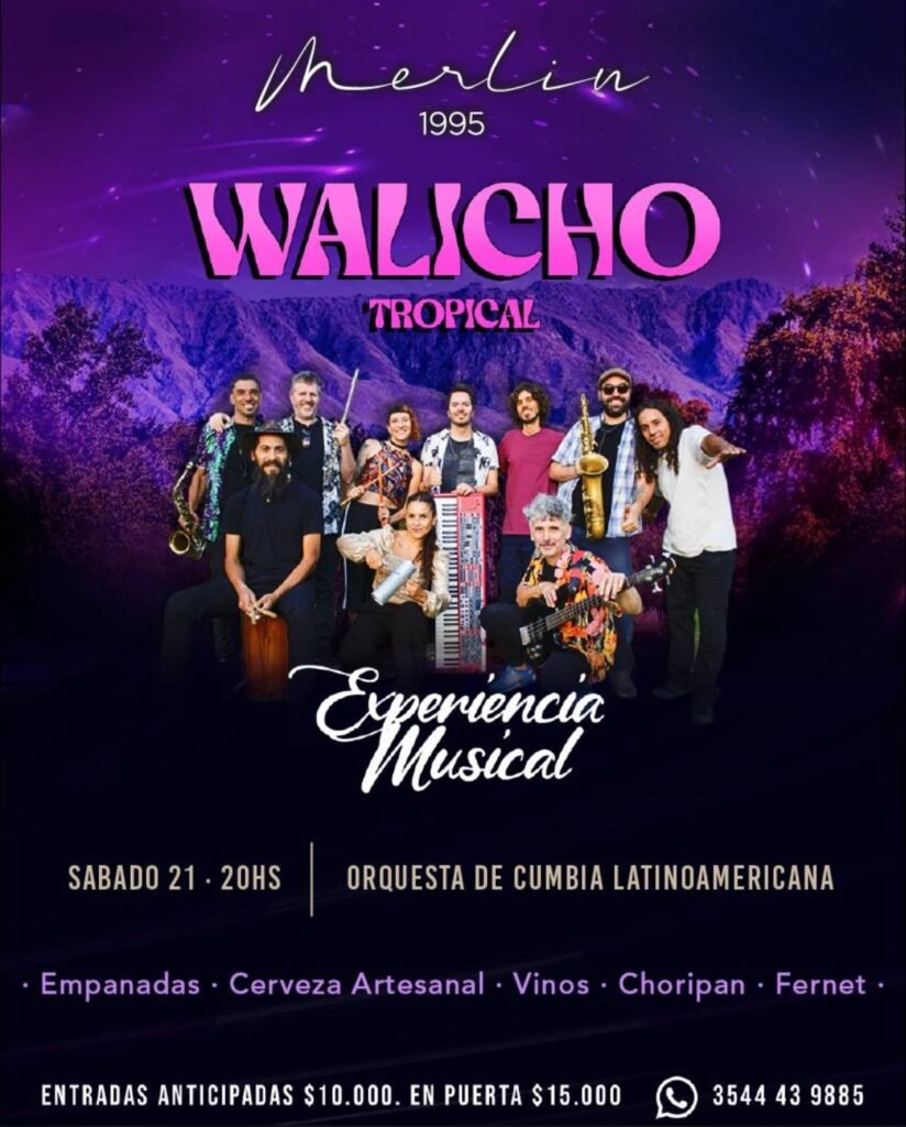 Este sábado 21 a las 20 hs, viví una verdadera Experiencia Musical junto a Walicho Tropical, una orquesta de cumbia latinoamericana que te va a hacer bailar toda la noche.