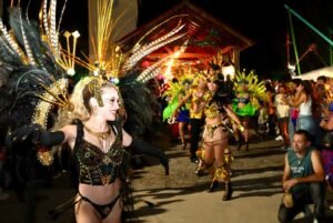 El corazón de los festejos locales estuvo en el Parque Recreativo, donde miles de vecinos y turistas disfrutaron de una celebración masiva. La jornada contó con las actuaciones destacadas de Pasos de Fuego y Costasacate, sumado a la energía de locutores, animadores y una gran cantidad de productores, disfraces y bandas para darle color a la noche.