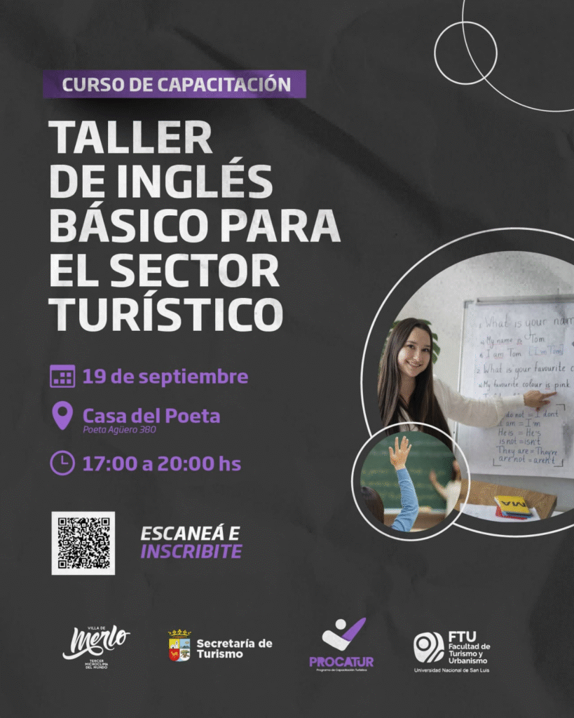 ÚLTIMAS NOTICIAS EXITOSA JORNADA DE CAPACITACIÓN EN INGLES TURISTICO 22/09/2025 PROMO ESPECIAL A MERLO con CHEVALLIER y flecha bus 22/09/2025 Promoción junto a naranja x 22/09/2025 La Villa de Merlo lanza su nueva campaña de verano 2025/2026: Merlo para todos los gustos. 19/09/2025 Una caravana de muscle cars visitó el primer viñedo de altura de San Luis 18/09/2025 Taller de Inglés Básico para el sector turístico 15/09/2025 Encuentro Regional de Turismo en La Punta 2025 09/09/2025 Participación en el Foro Nacional de Turismo San Juan 2025 09/09/2025 PROXIMA CAPACITACIÓN: AMBIENTE Y SUSTENTABILIDAD PARA GASTRONOMIA Y HOTELERÍA 09/09/2025 « Anterior 1 2 3 4 5 6 7 8 9 10 11 12 … 19 20 21 22 Siguiente »