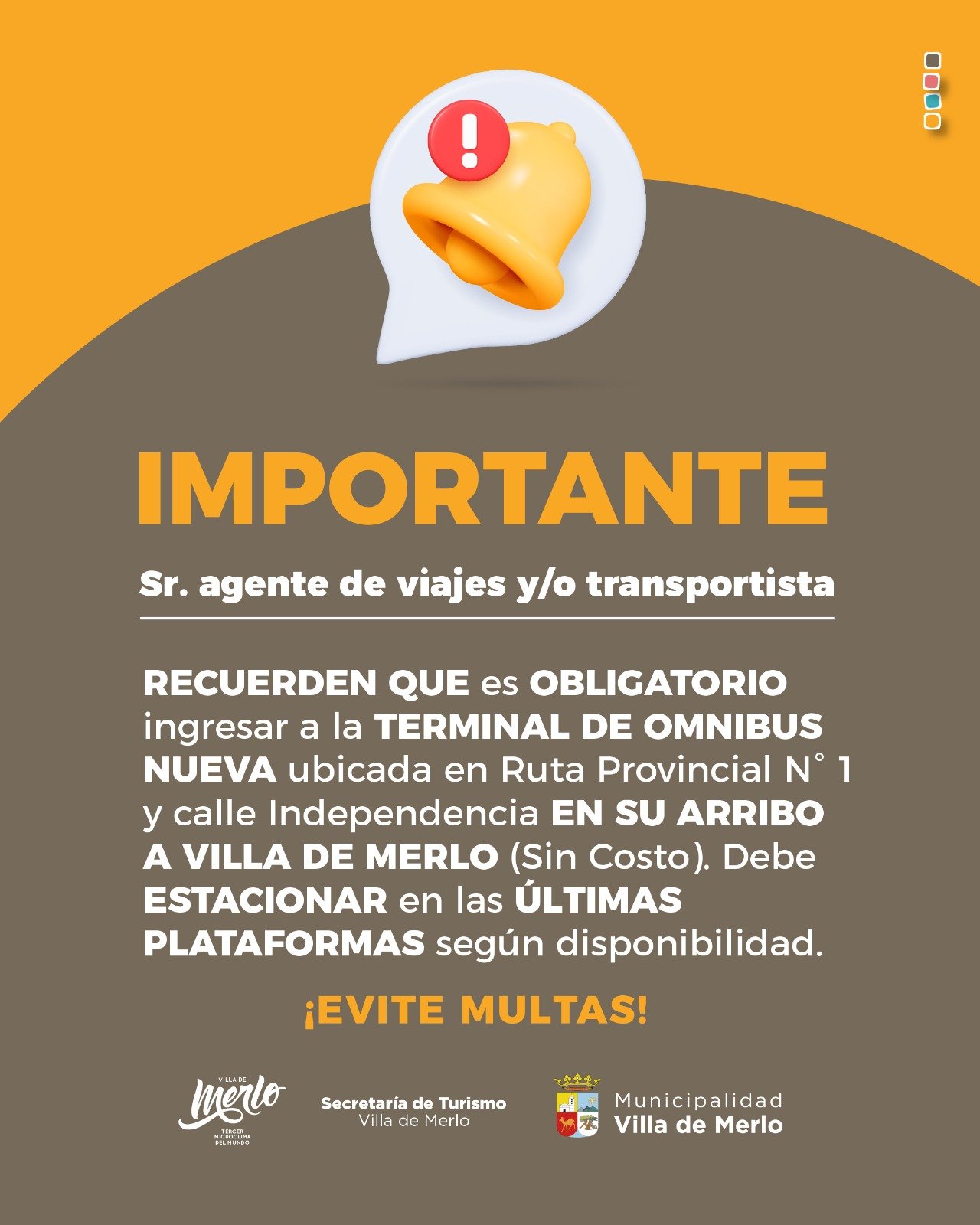 Nuevo instructivo de acceso, circulación y manejo en Merlo, destinado a transportistas y agencias de viaje que llegan a nuestra ciudad.