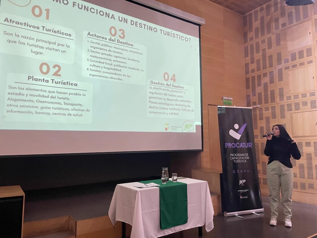 Este lunes 24 de junio se llevó a cabo en la Casa del Poeta la capacitación “Tu voz, tu historia: seguimos construyendo el turismo”, una propuesta impulsada por la Secretaría de Turismo de la Villa de Merlo y dirigida a comerciantes locales.